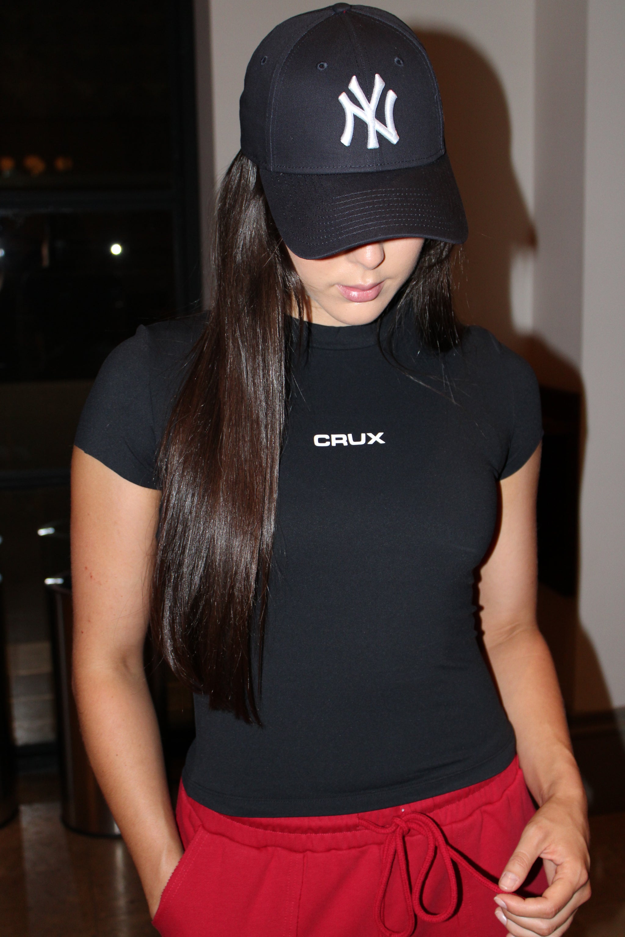 For some reason, I’m obsessed with the branding. The Lenzo tee hits just at the waistline of the leggings — makes my proportions look amazing. The fabric feels soft but structured. I literally wear the same top to the gym everyday.